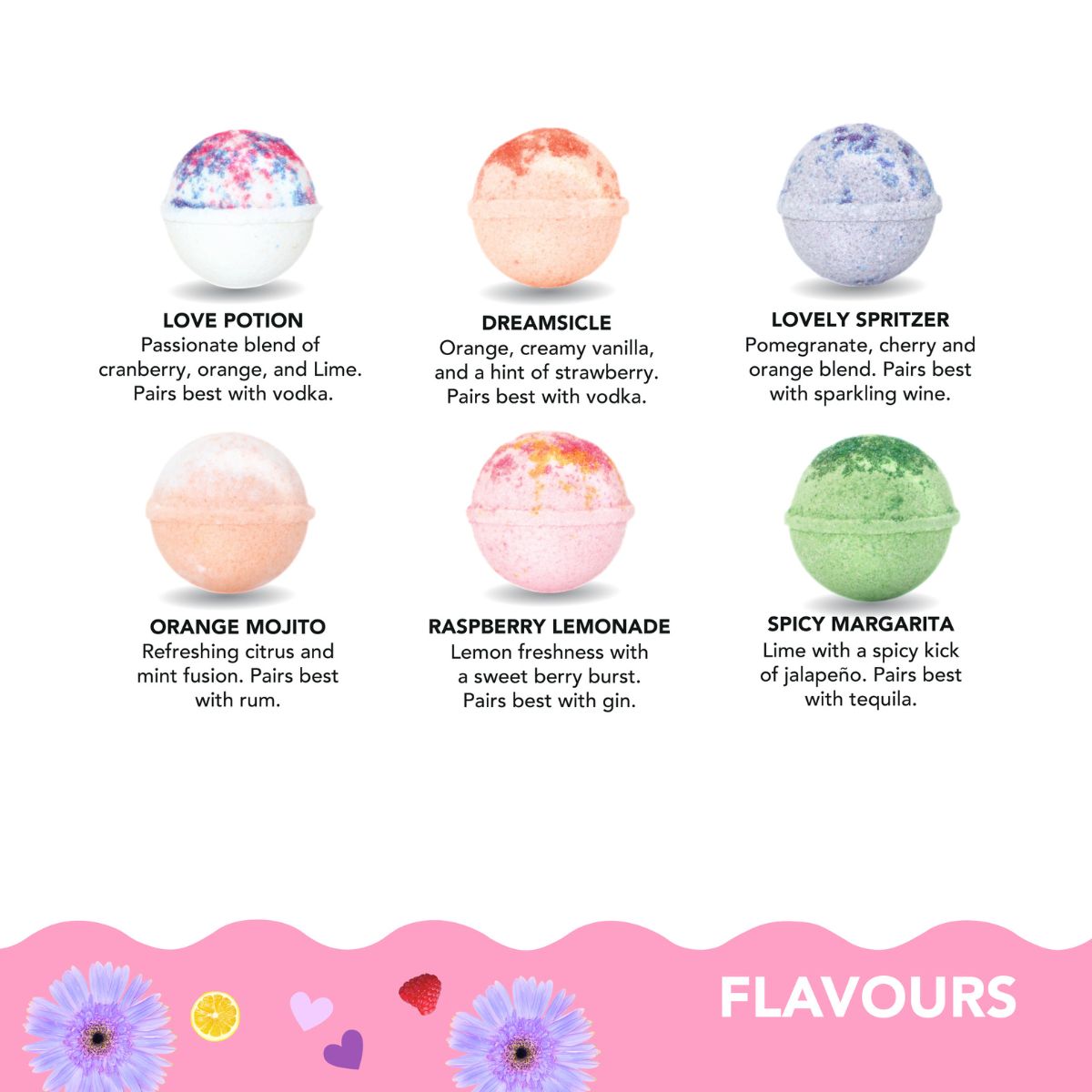 Bring a little sparkle, color, and charm to your drinks with the Lovely Variety Pack™. This collection features six delicious and unique cocktail bombs, each with its own personality and flavor. Designed to fizz, sparkle, and delight, it’s the perfect way to make any drink a moment to remember.