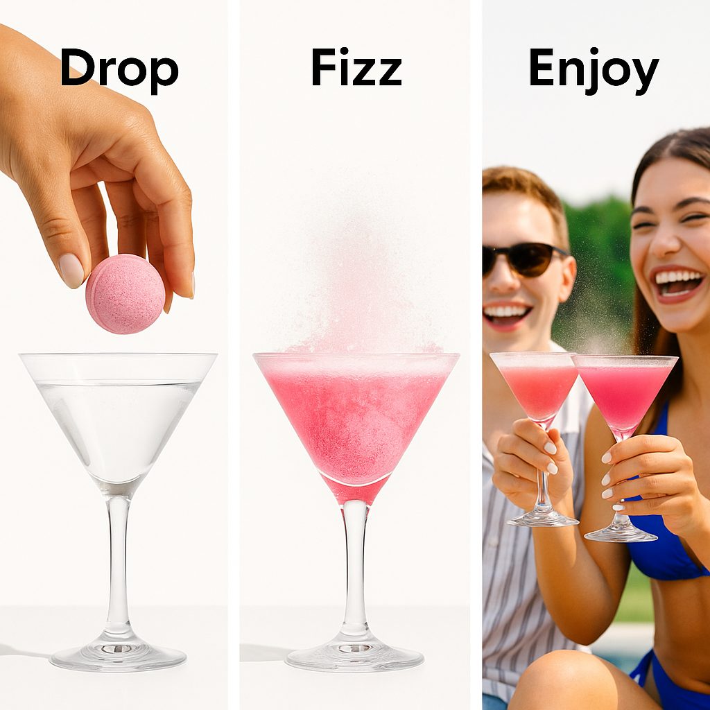 - Instant Cocktails — Just drop, fizz, and enjoy! No measuring, no mess, perfect drinks every time