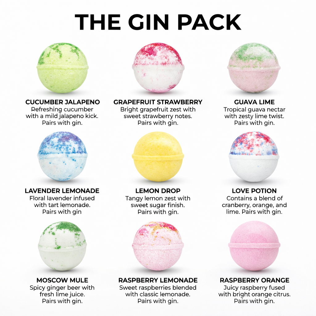 Meet the Gin Discovery Jar, packed with 30 handcrafted cocktail bombs inspired by bright, botanical flavors that pair beautifully with gin. Featuring 9 refreshing varieties, each bomb delivers crisp, fruity, and aromatic notes for a vibrant at home cocktail moment. Just drop, fizz, and sip for an easy gin inspired treat. Perfect for gifting, gatherings, or simply elevating your evening. Bring botanical bliss to your glass with the Gin Discovery Jar today.