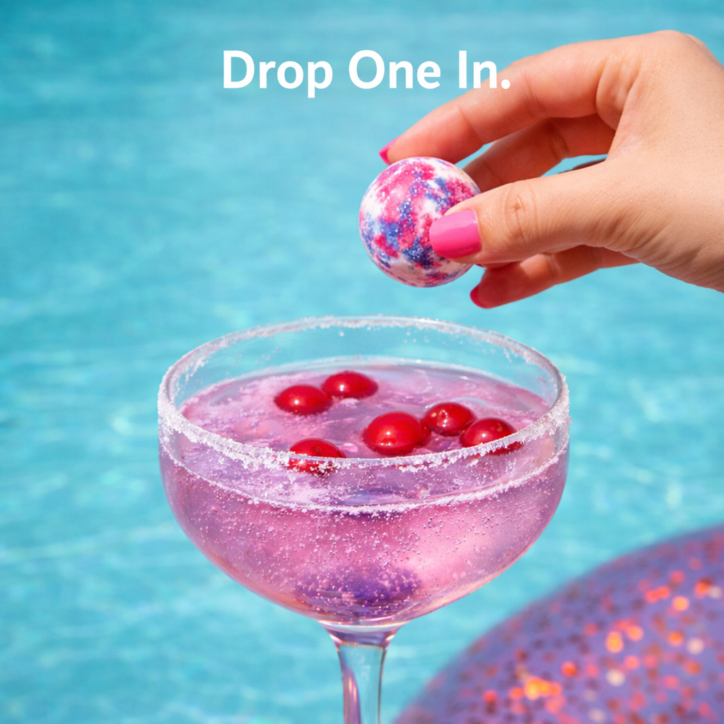 Unwrap and drop your Cocktail Bomb. Watch it fizz, dissolve, and release vibrant colour and flavour ✨
