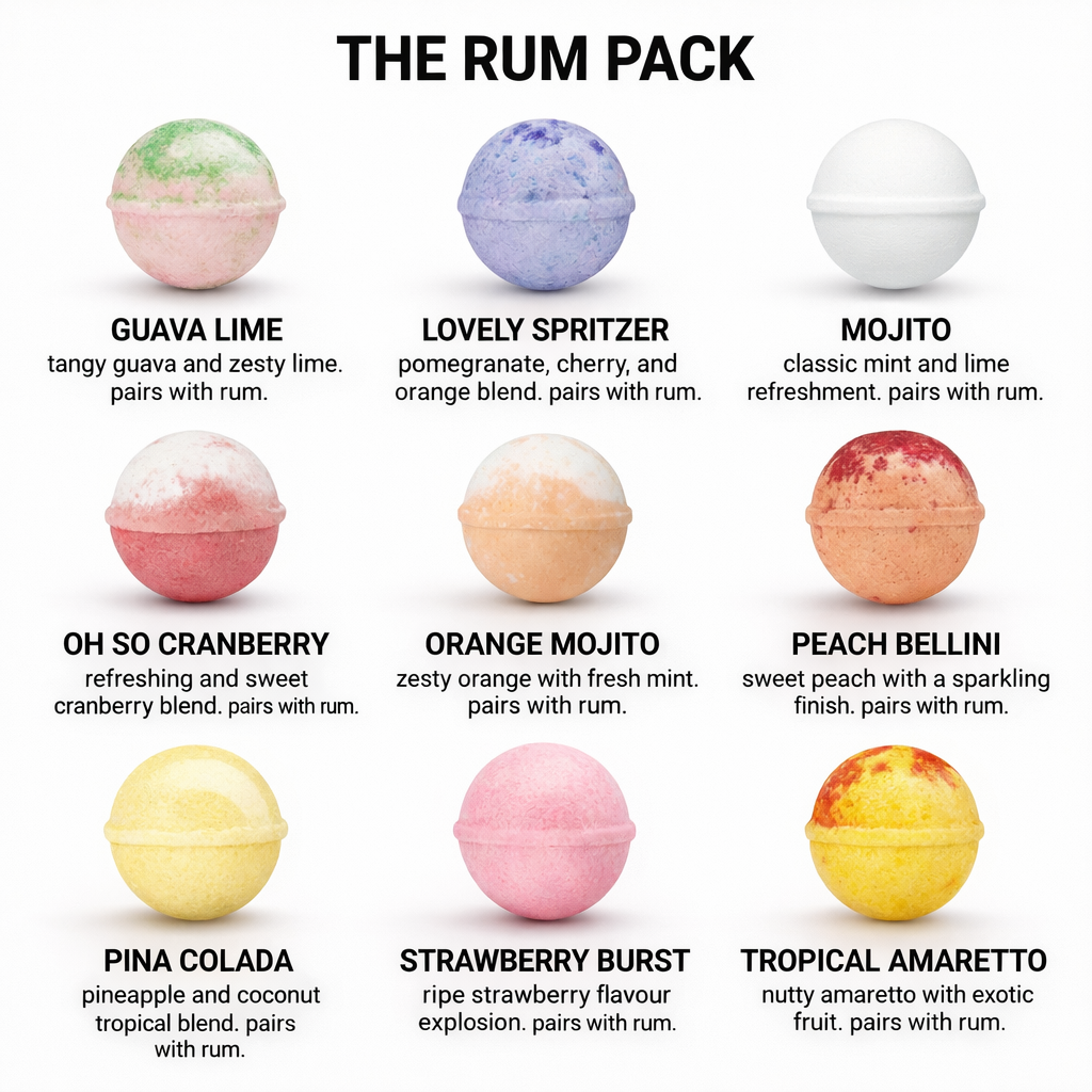 The Rum Discovery Jar gives you 30 rum inspired cocktails in one convenient jar, each handcrafted bomb transforming any drink into a bold, tropical, bar quality experience in seconds. With nine vibrant flavors including Piña Colada, Peach Bellini, Mojito, and Guava Lime, every drop delivers colorful fizz, smooth balanced taste, and instant vacation vibes. Perfect for parties, gifting, or everyday fun, this premium collection makes mixology effortless and exciting, letting you enjoy thirty unique cocktail or mocktail moments with zero prep and all the flavor.